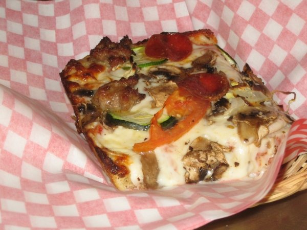 The foccacia is nice and chewy and the cheese is good but the toppings are really the star here. Really flavorful sausage and you can really discern the flavors of each topping.